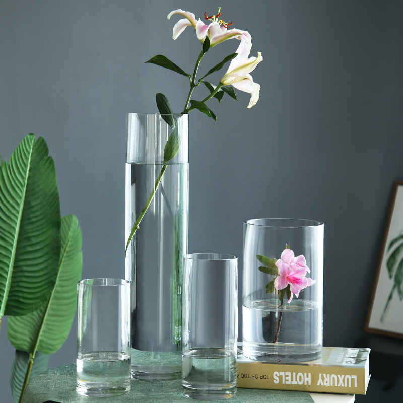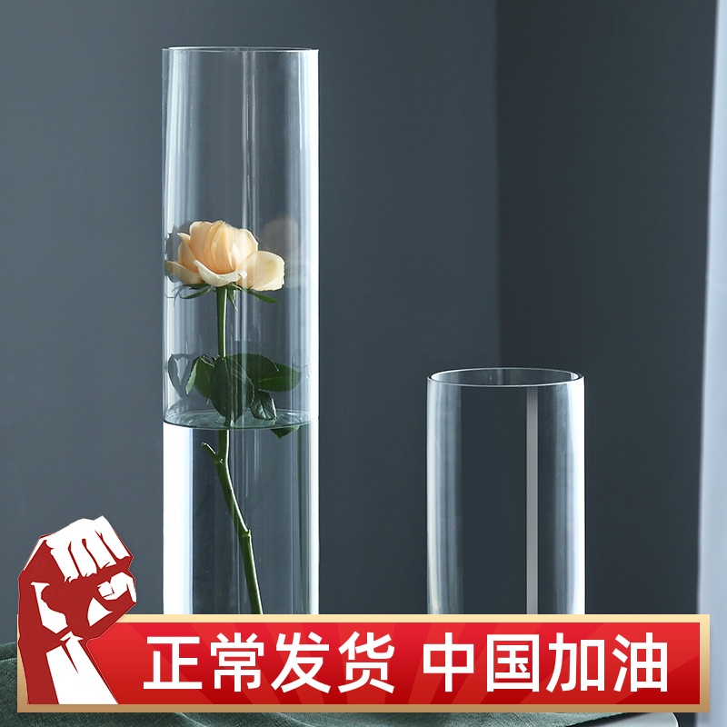 鲜花现代简约大号高款玻璃花瓶富贵竹水竹百合大R水培直筒水养特