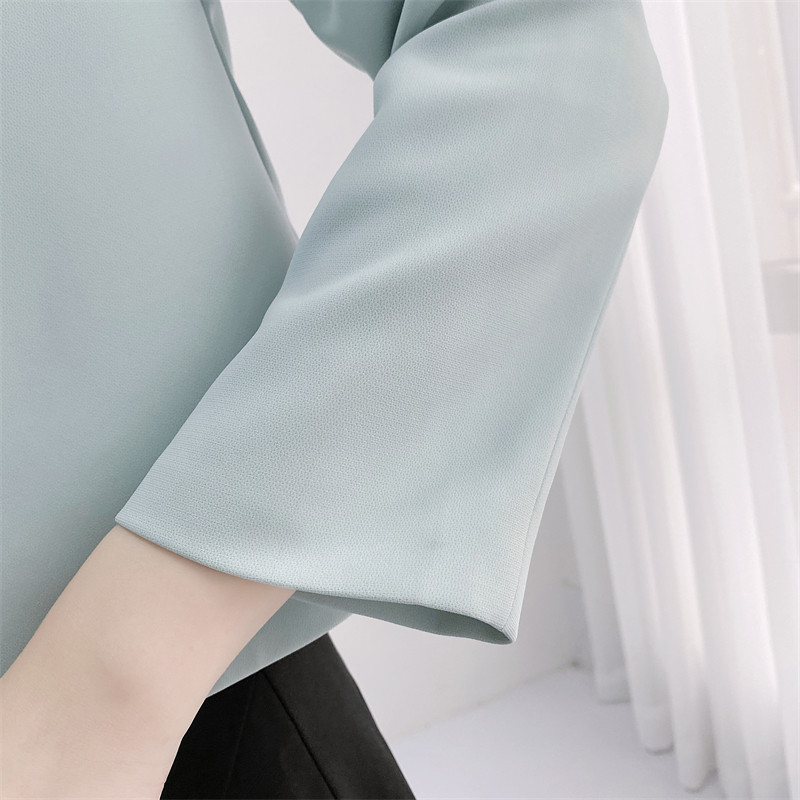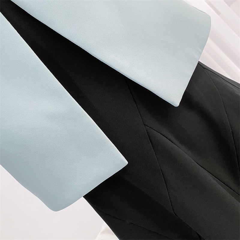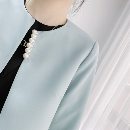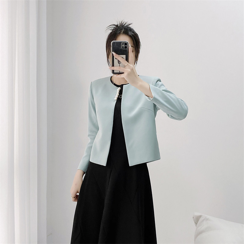 浅蓝色短外套女长袖圆领披肩旗袍外搭小西服女士西装外套短款上衣