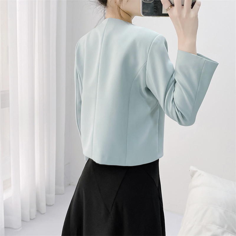 浅蓝色短外套女长袖圆领短款上衣