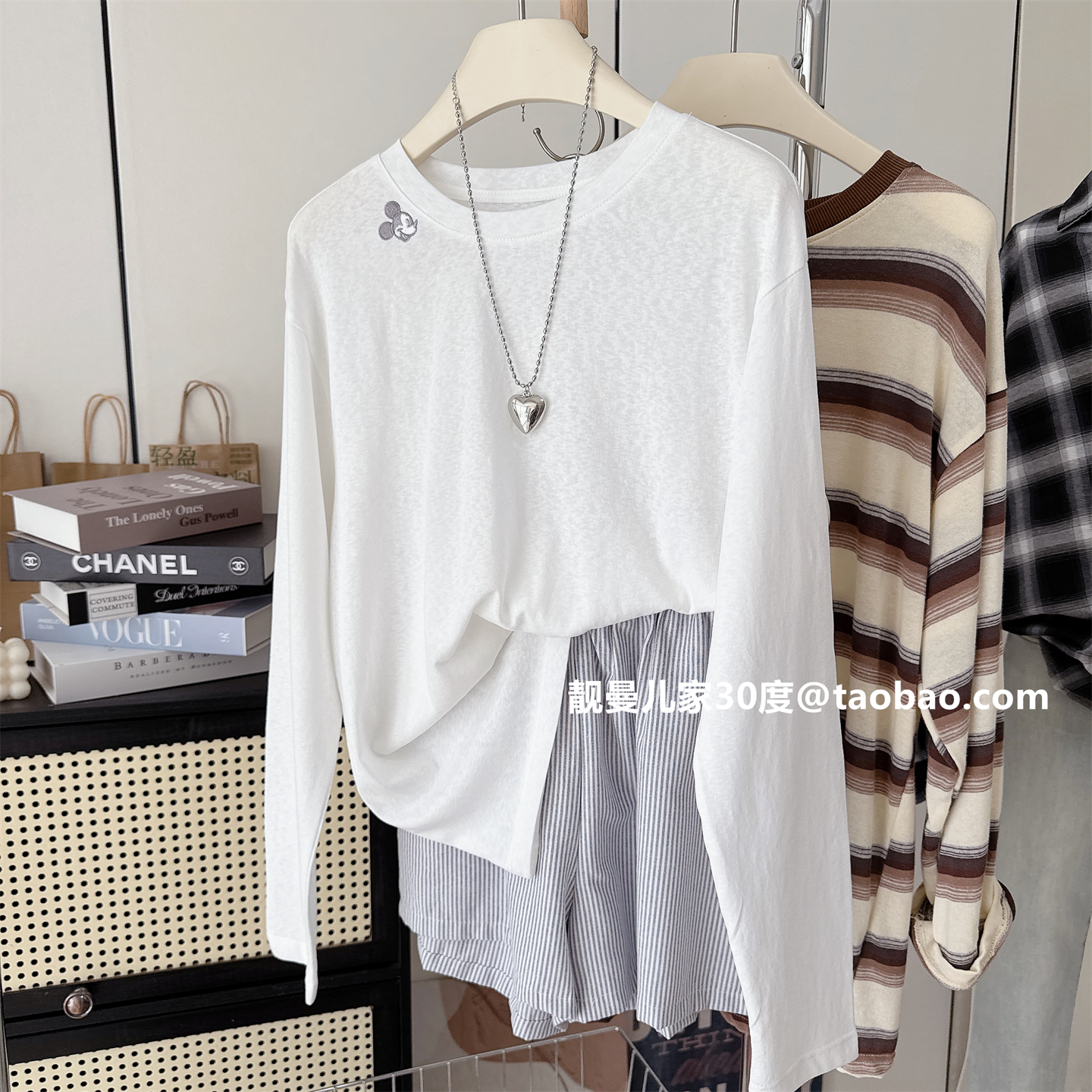 韩系卡通刺绣白色长袖防晒T恤