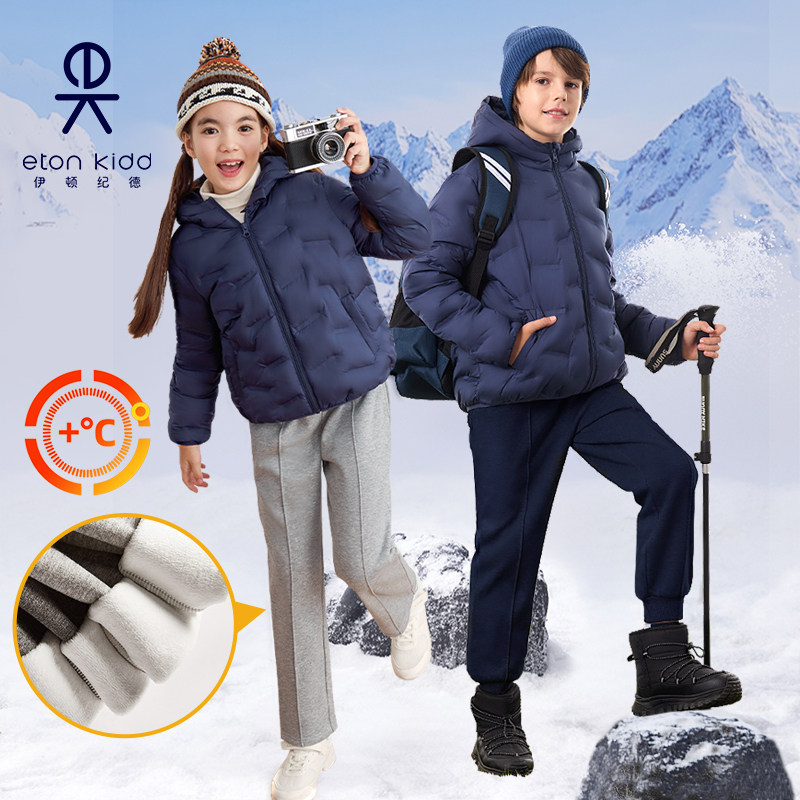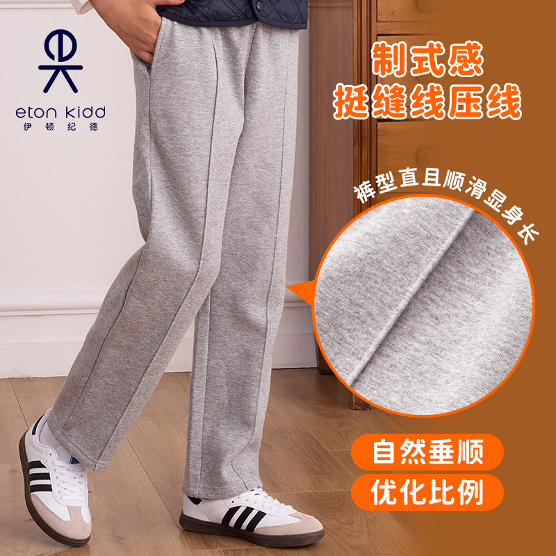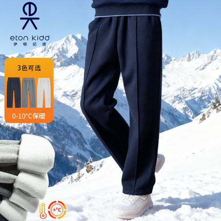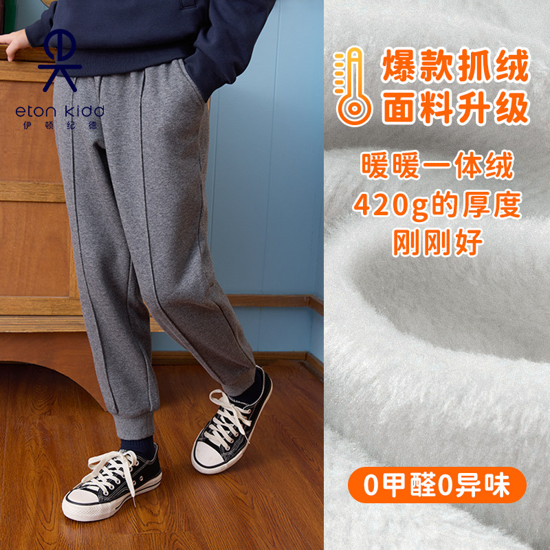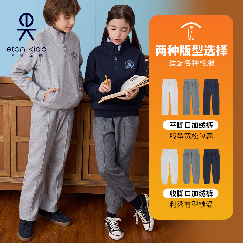 伊顿纪德新款秋冬儿童装针织加绒束脚长裤男女童运动裤保暖直筒裤