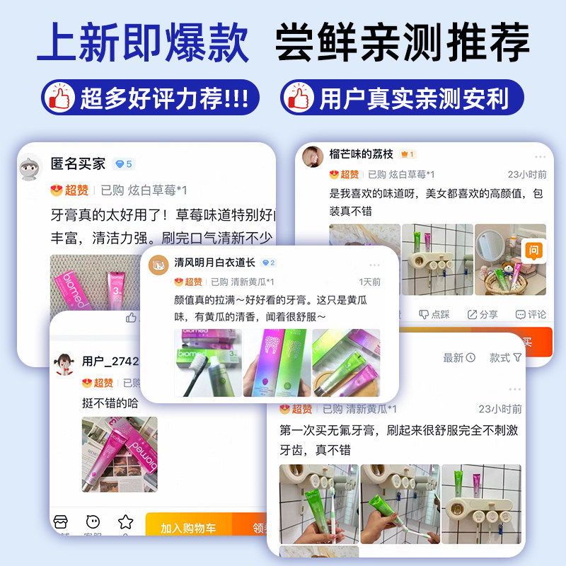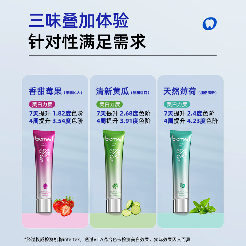 biomed进口美白牙膏无氟黄瓜草莓清新口气去黄去口臭成人官方正品