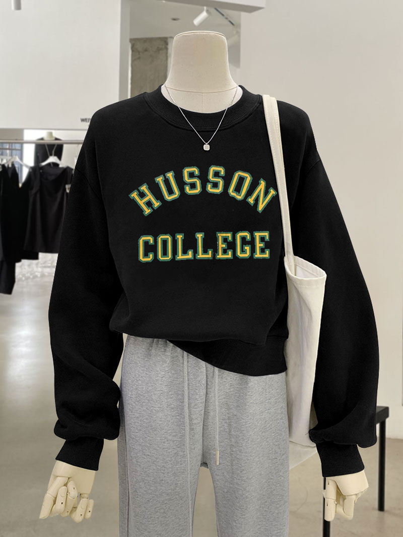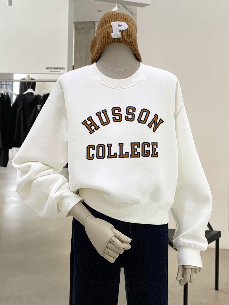 2025春秋冬新款字母百搭薄款上衣宽松长袖圆领套头卫衣女加绒加厚