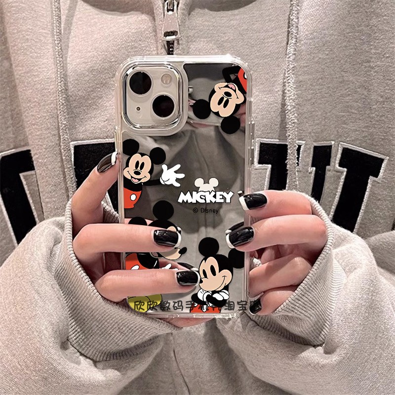新款卡通可爱米奇镜面手机壳高级感xr彩绘iphone16promax简约xs春季13适用苹果78/14/15镜子11保护壳12手机套