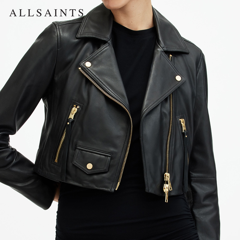 ALLSAINTS女士短款机车皮衣Elora修身夹克春秋季WL166X