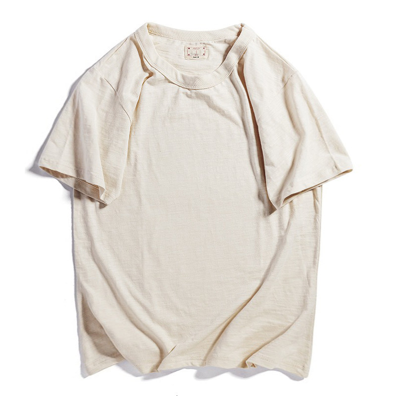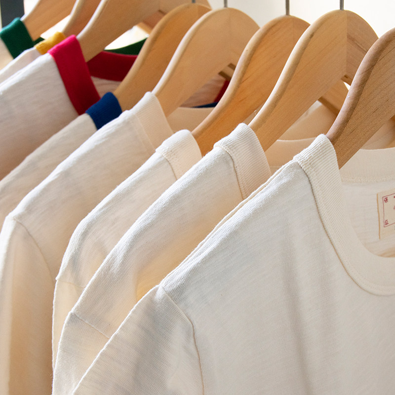新品竹节棉原色复古运动基础宽松T恤男女国潮老布短袖纯棉打底衫