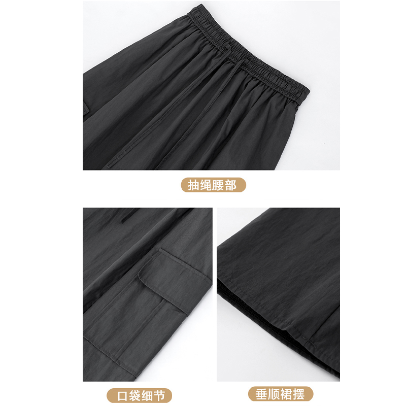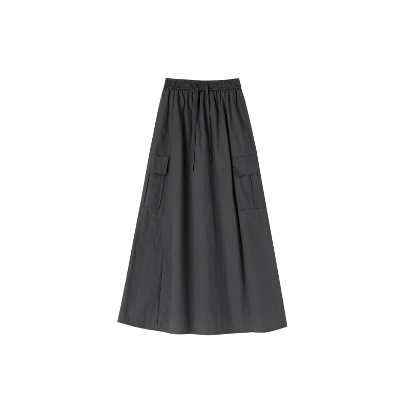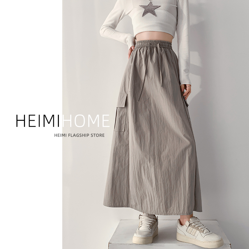 灰色工装裙女春夏秋复古显瘦中长款半身裙高腰肌理感褶皱a字长裙