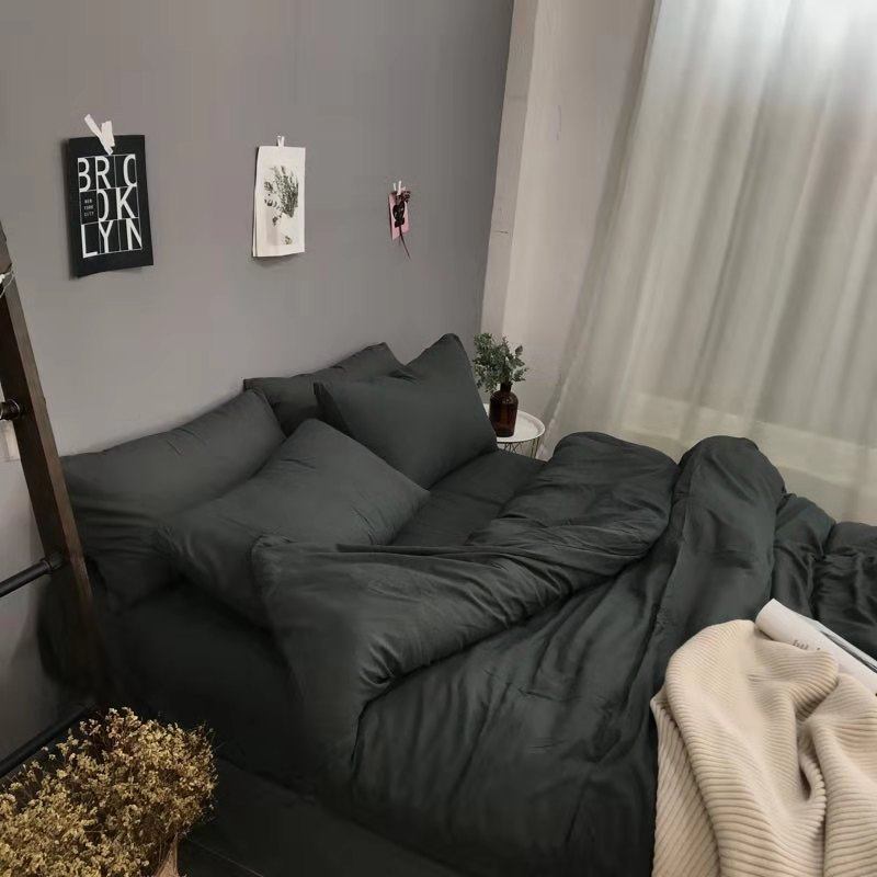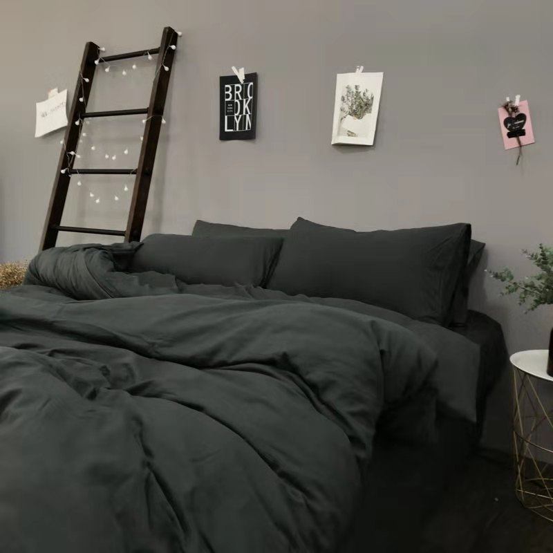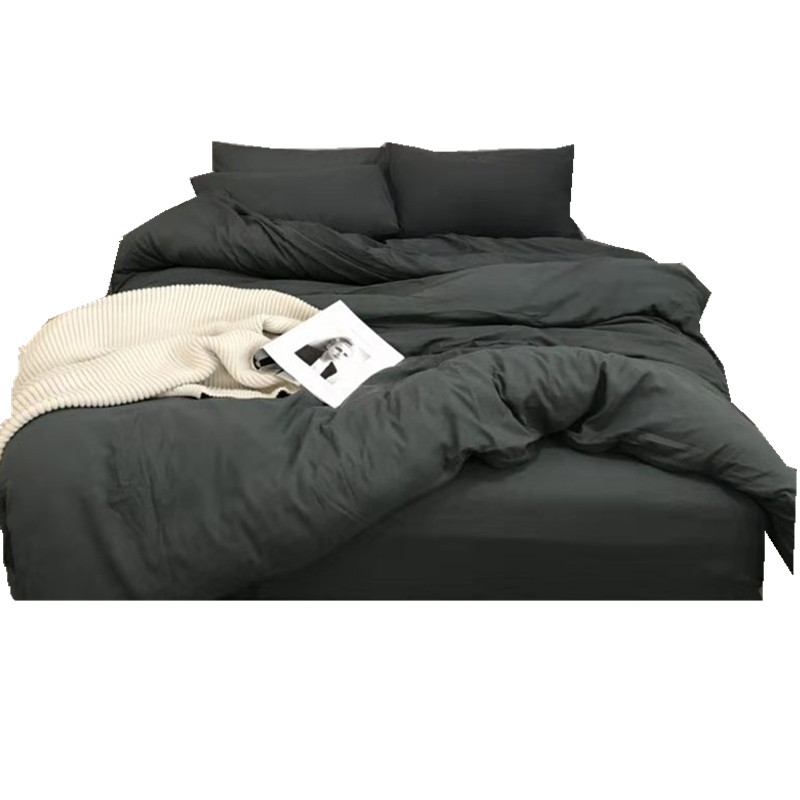 网红款水洗棉四件套日式简约全棉床单被套学生宿舍三件套床上用品