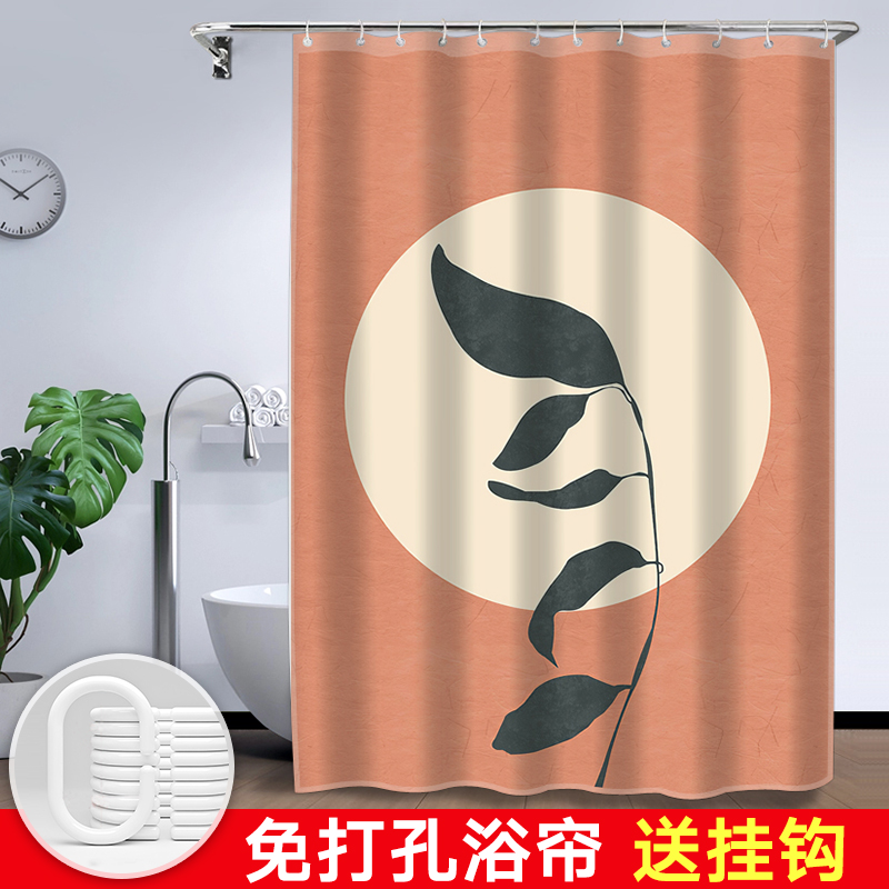 北欧浴帘套装免打孔卫生间防水布加厚防霉浴间隔断高档浴室淋浴帘