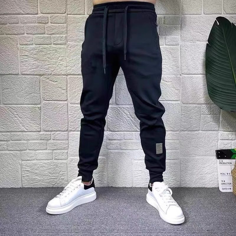 秋冬季潮流运动休闲长裤加绒加厚男士痞帅小脚卫裤九分束脚哈伦裤