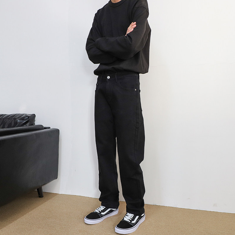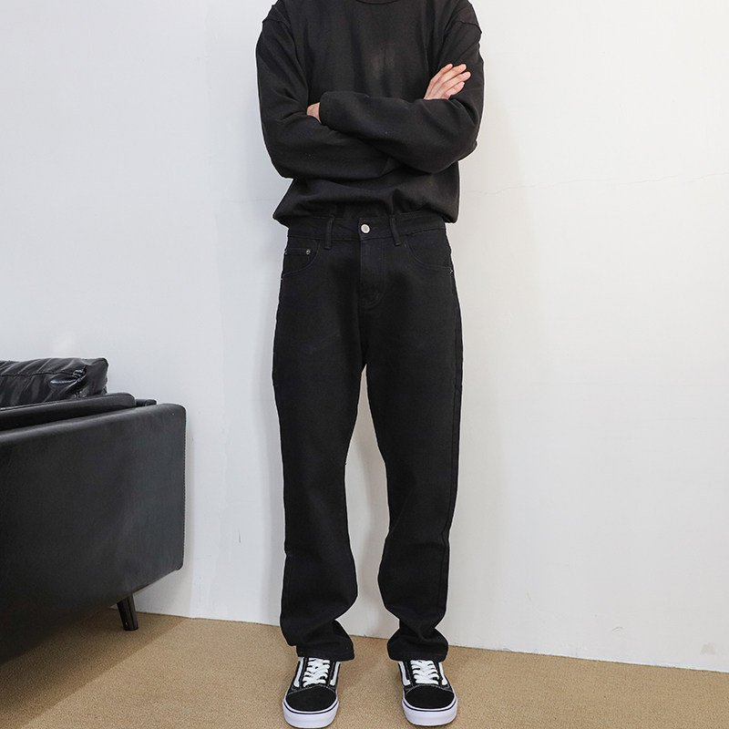 美式高街潮牌宽松直筒裤2026春季新款黑色牛仔裤男款工装水洗裤子