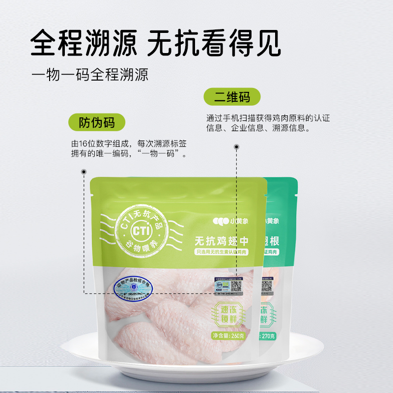 小黄象无抗鸡翅中新鲜冷冻鸡翅中生鲜食材鲜嫩多汁鸡肉鸡中翅