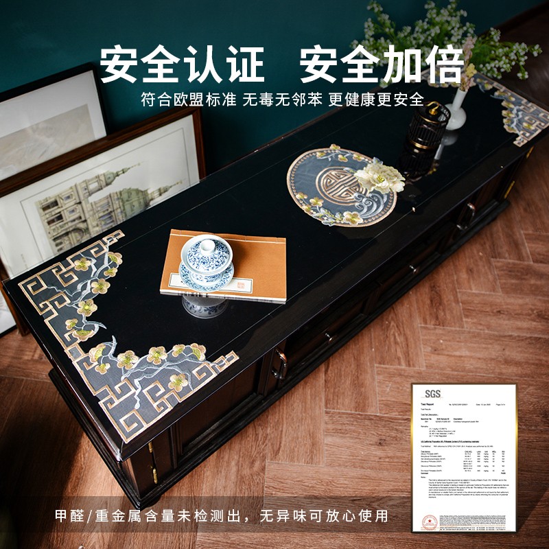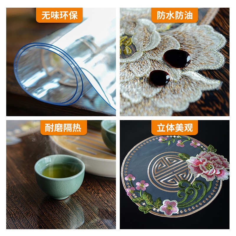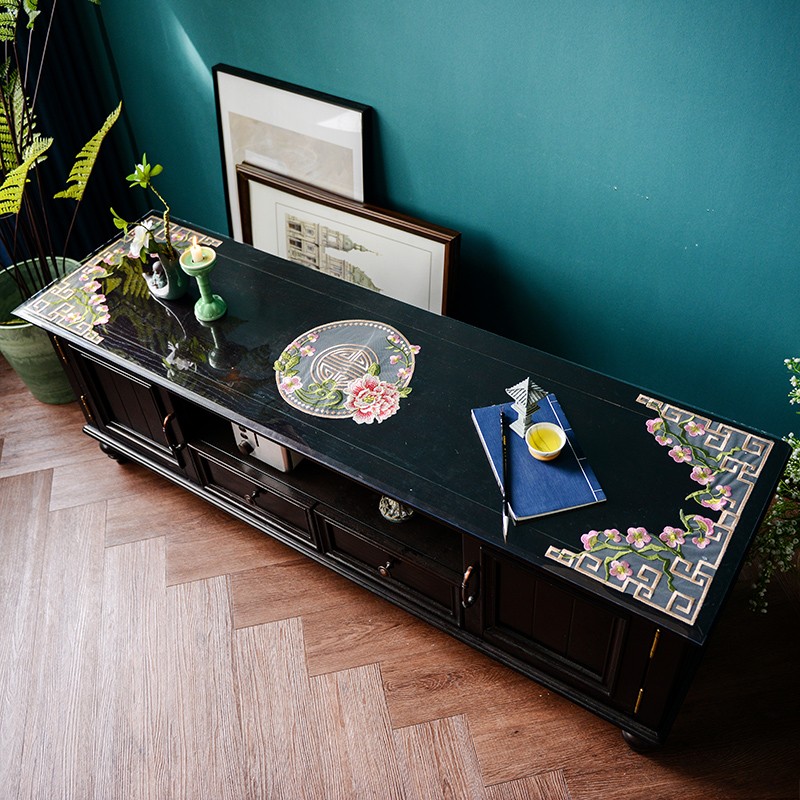 新中式pavc电视柜桌布防水防油免洗桌旗水晶板蕾丝刺绣防尘罩盖布