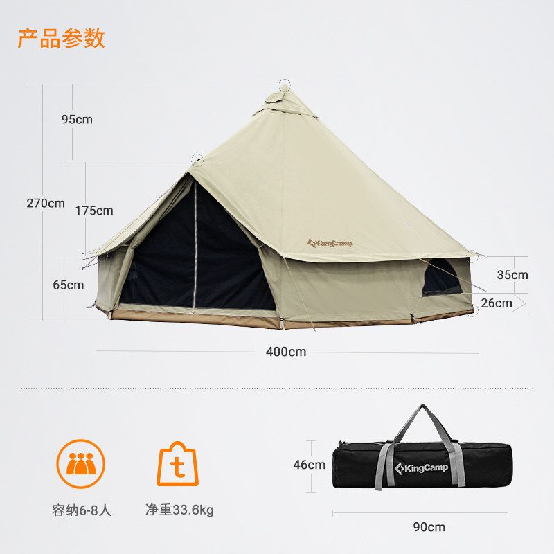 KingCamp可汗帐篷户外蒙古包露营轻奢四季金字塔帐大空间防风防雨