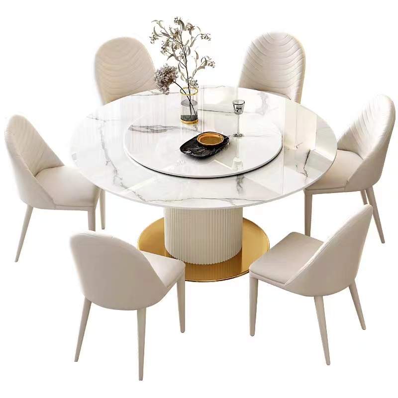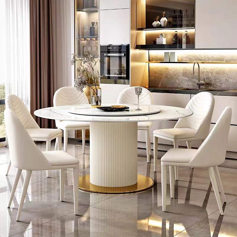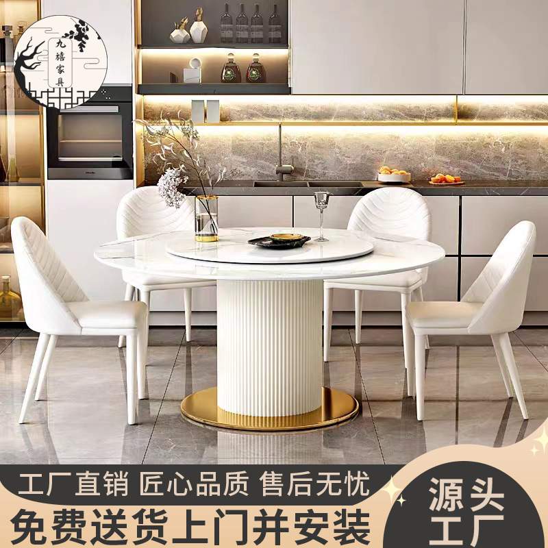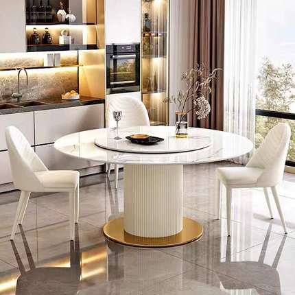 轻奢奶油风岩板圆形餐桌椅组合家用小户型客厅现代简约白色吃饭桌