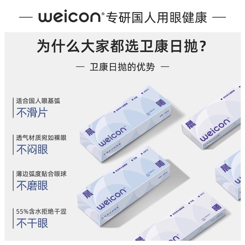 卫康隐形眼镜晨曦日抛30片透明水凝胶防uv水润透氧近视镜舒适