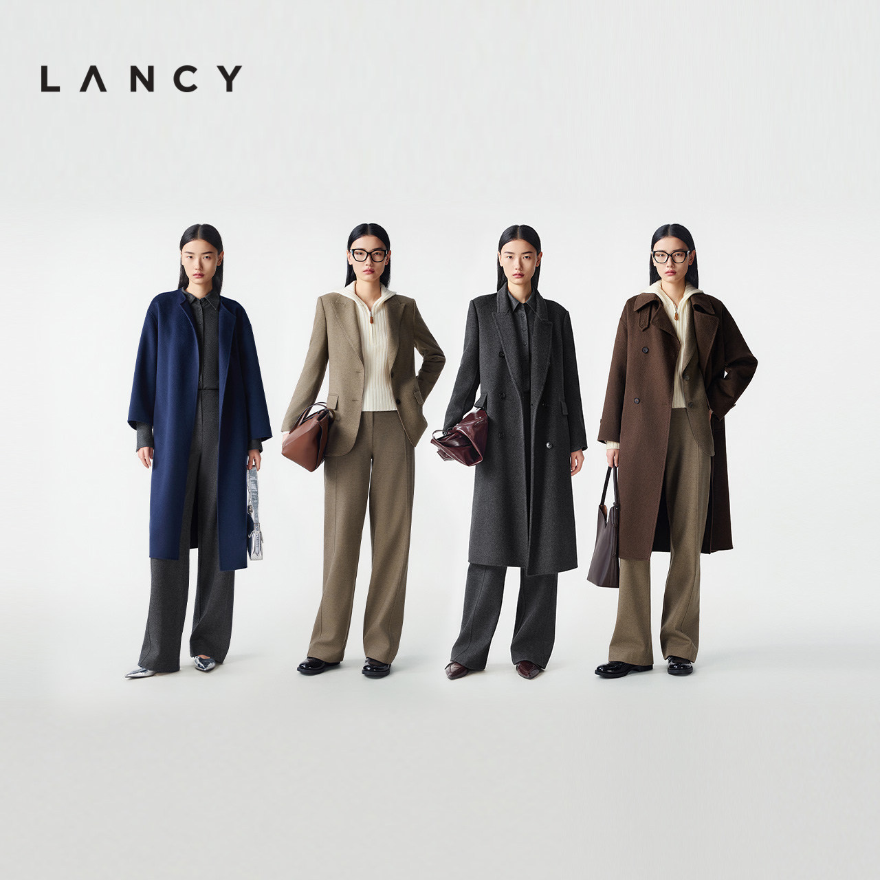 LANCY/朗姿2025冬新款老钱风羊毛直筒西装裤简约百搭通勤长裤子女