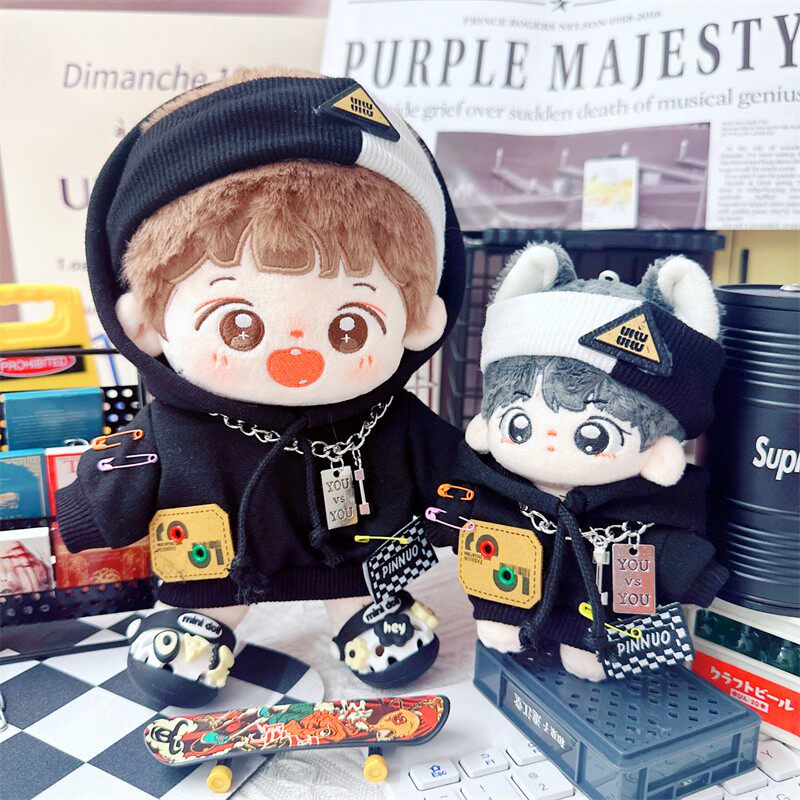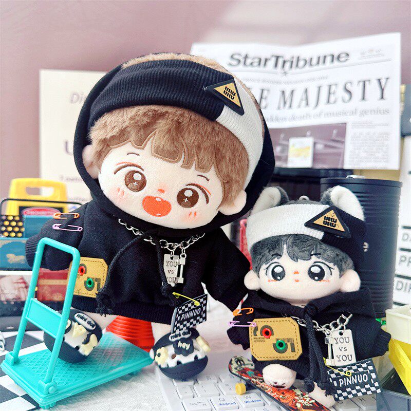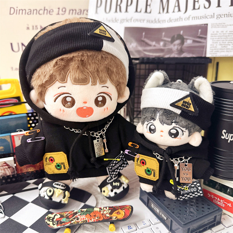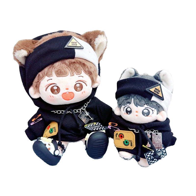 现货棉花娃娃娃衣10cm15cm20cm黑色卫衣男友力套装男娃衣服发带