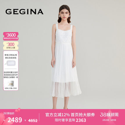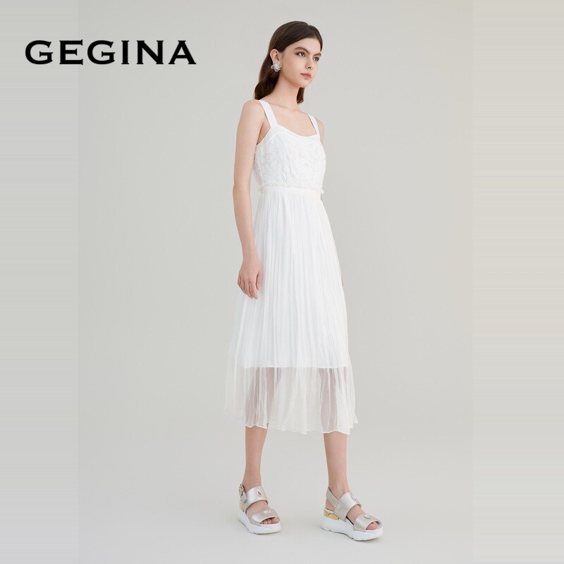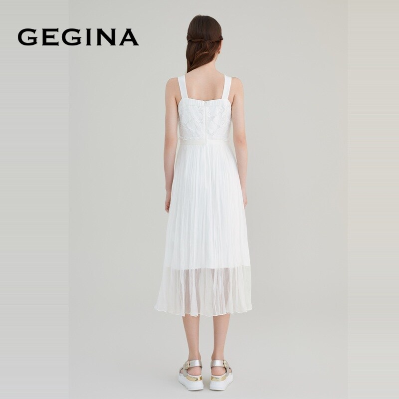 GEGINA吉吉娜女装春夏商场同款白色收腰吊带连衣裙高级感修身裙