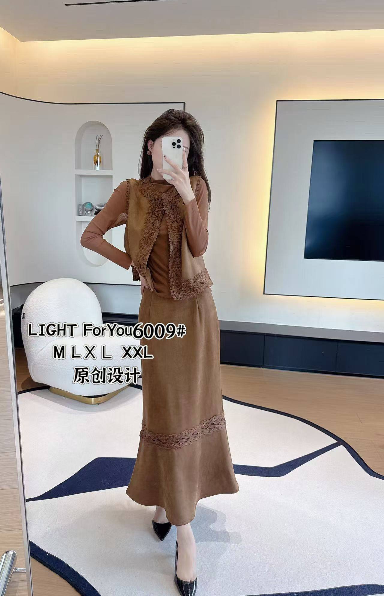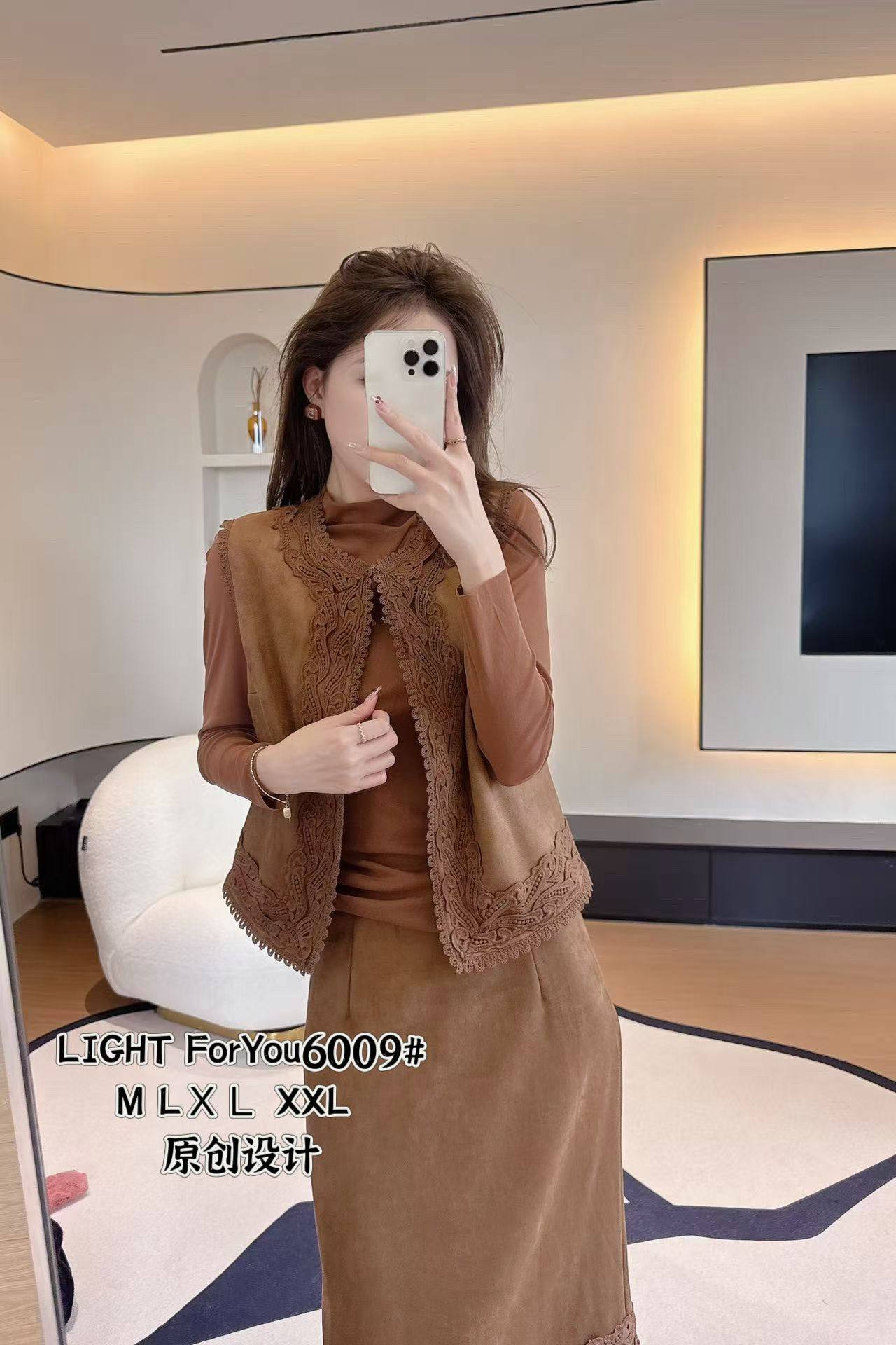 五彩蝶2025新款气质蕾丝拼接背心+高腰A字半身长裙打底三件套装女