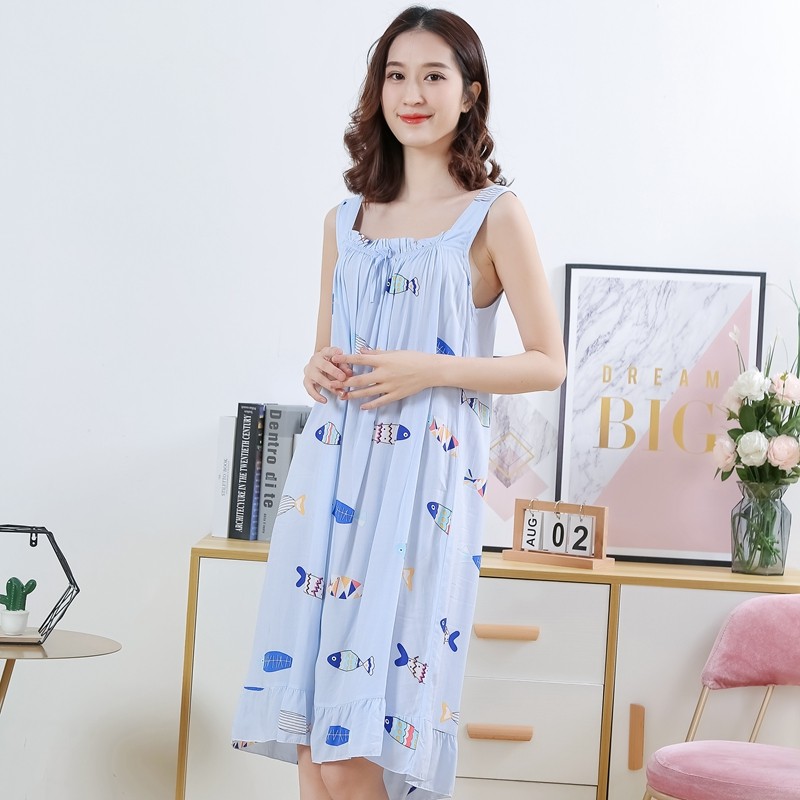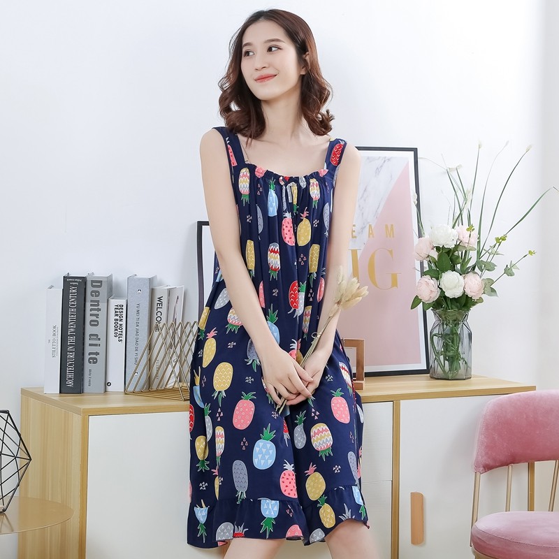 吊带睡裙少女夏纯棉绸加长可爱人造棉韩版宽松绵绸清新学生连衣裙