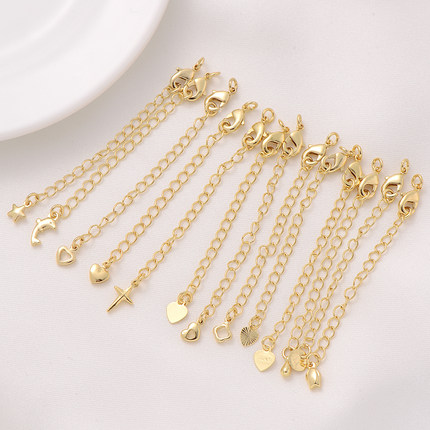18K包金保色龙虾扣项链加长延长链尾链手链手工diy饰品配件材料