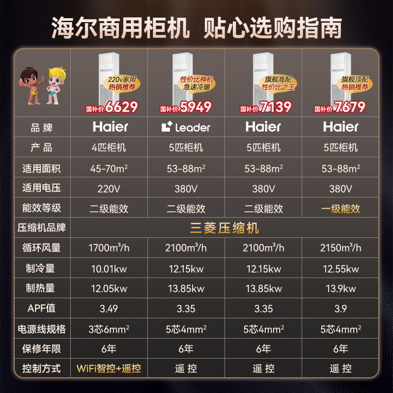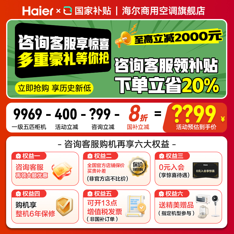 【国家补贴】海尔5匹立式空调柜机商用一级能效中央空调旗舰店