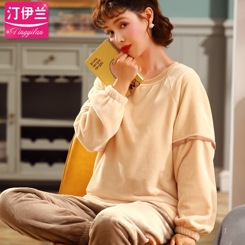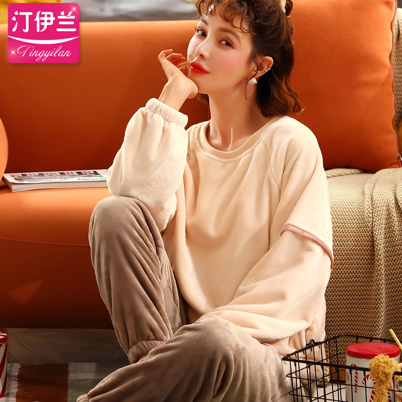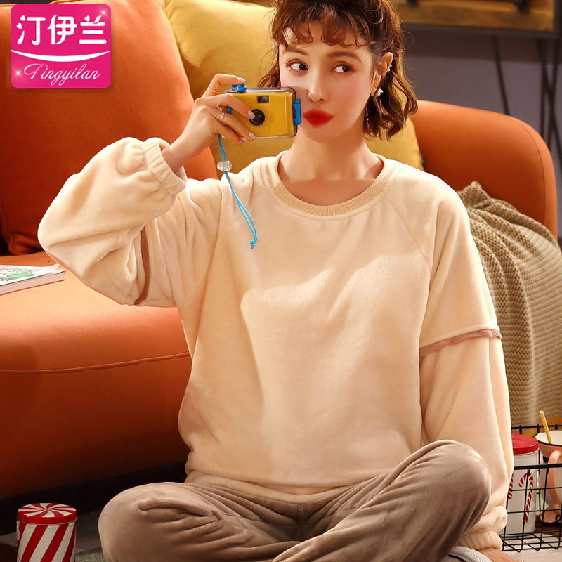 韩版睡衣女可爱日系网红加厚法兰绒套装家居服珊瑚绒秋冬甜美长袖