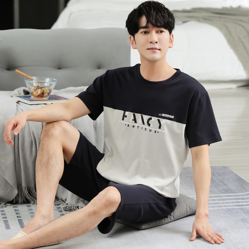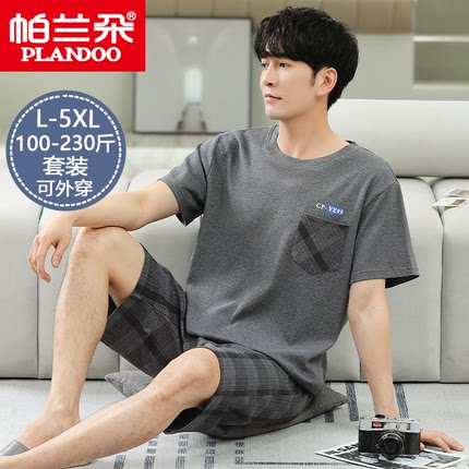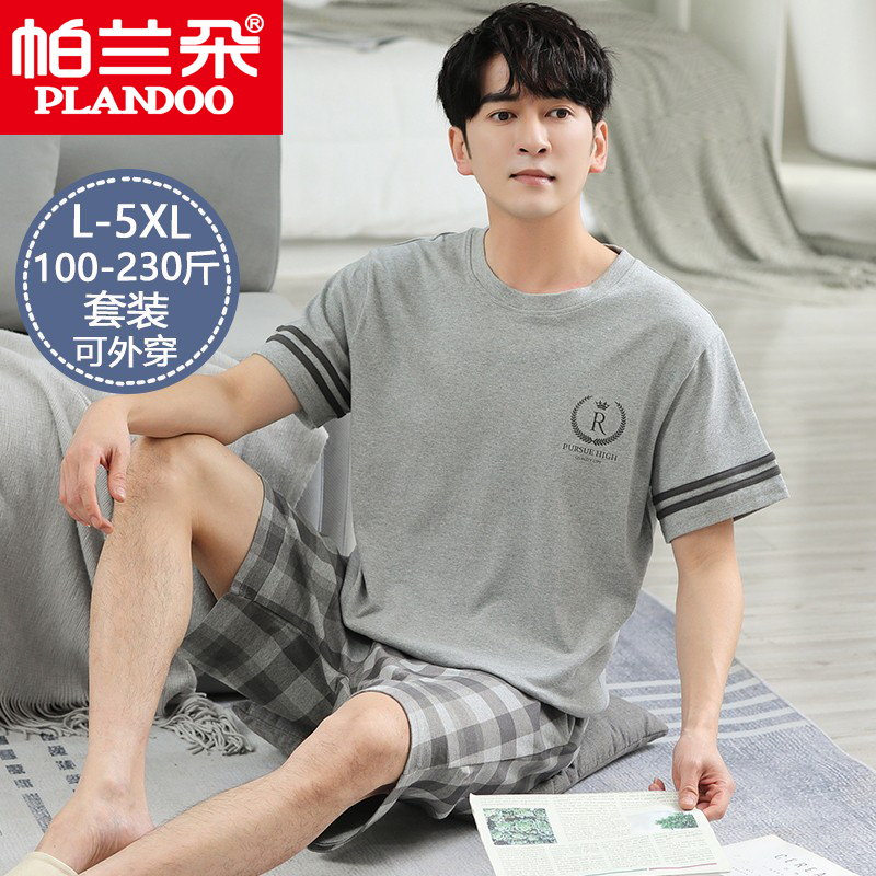 帕兰朵睡衣男士夏季纯棉薄款短袖短裤套装男款大码宽松家居服夏天