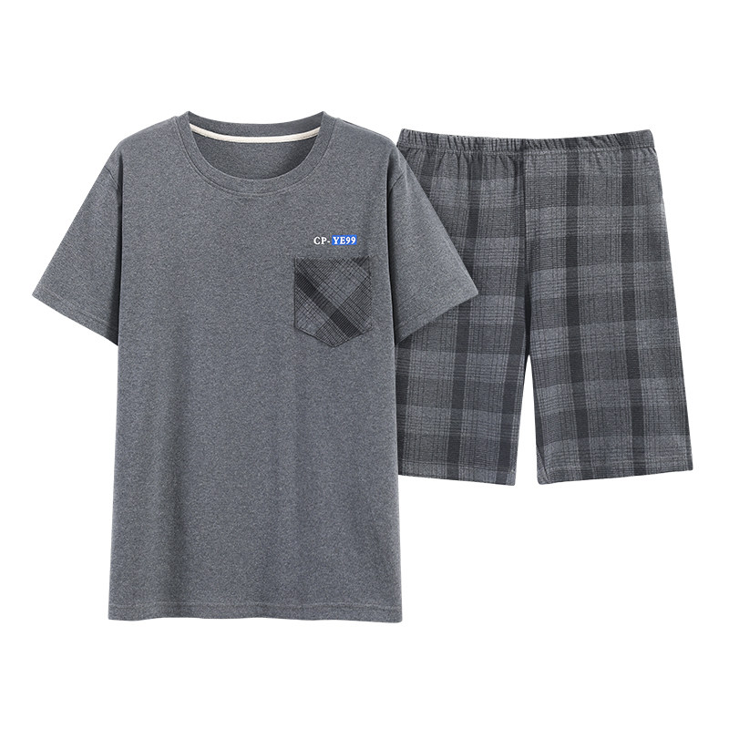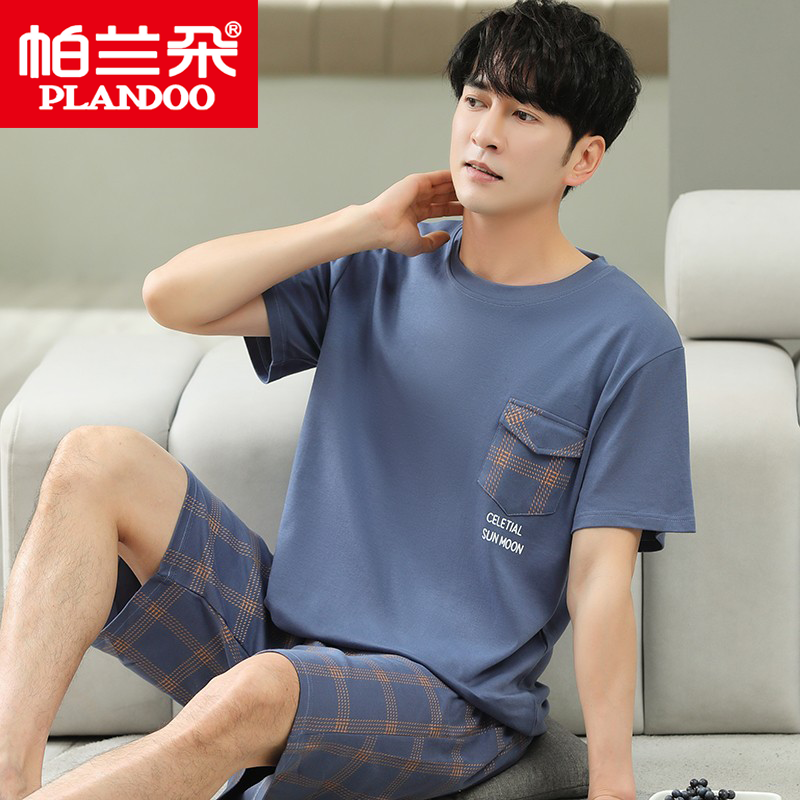 帕兰朵男士睡衣纯棉短袖短裤套装