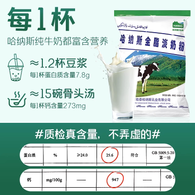 哈纳斯乳业新疆纯奶粉 纯牛奶粉成年大学生成年人儿童大学生