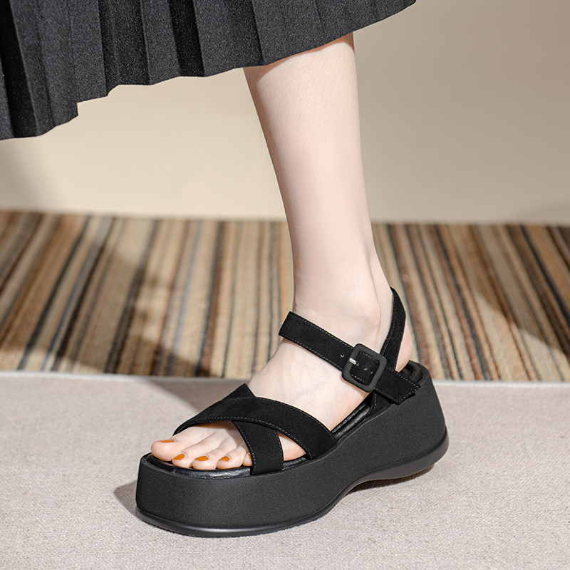 厚底松糕露趾凉鞋女2025新款夏季新款小个子增高一字带休闲罗马鞋
