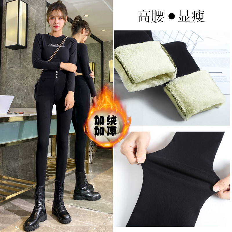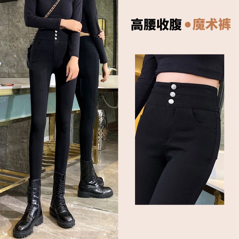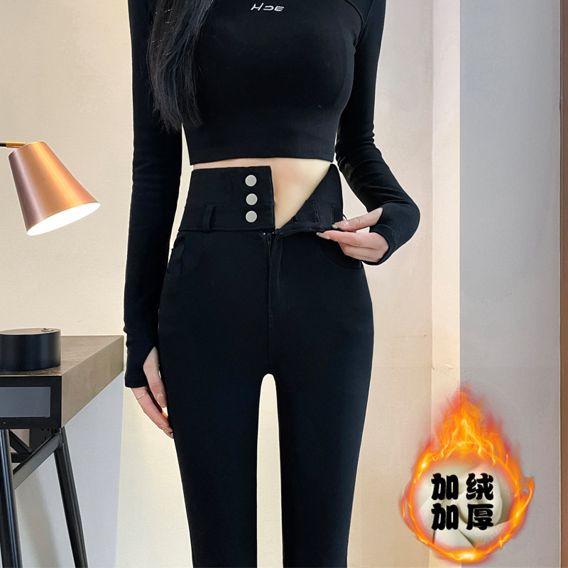 打底裤女外穿秋冬2024新款高腰紧身黑色铅笔小脚裤小黑裤子女加绒