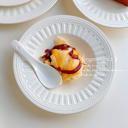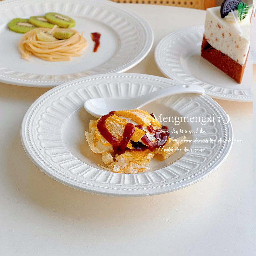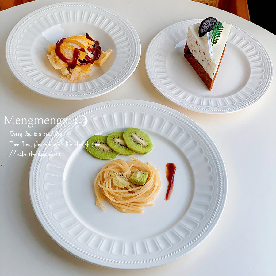 法式ins简约白色陶瓷西餐盘牛排意面盘水果盘草帽深盘好看的沙拉