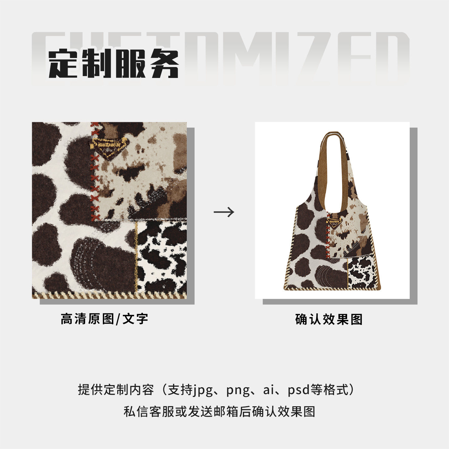 奥松原创奶牛流纹帆布包秋冬女2026新款上班通勤拼接高级感单肩袋