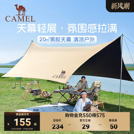【防晒防雨二合一】骆驼黑胶天幕帐篷户外露营装备野营遮阳棚便携