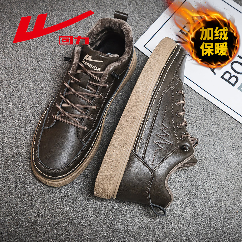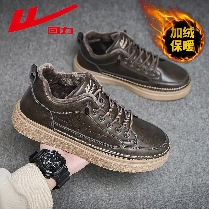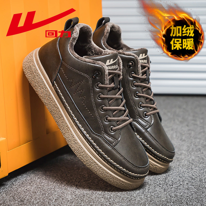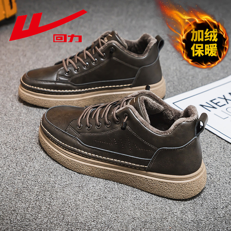 回力皮鞋男款秋冬新款软底黑色鞋子板鞋加绒棉鞋男士商务休闲男鞋