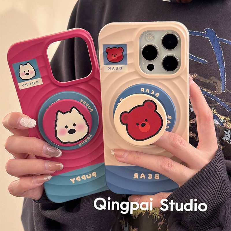 轻派ins奶乎乎小熊磁吸支架适用苹果17promax手机壳iphone16新款15pro女款14波漾13日韩风12卡通创意全包硬壳