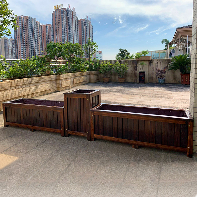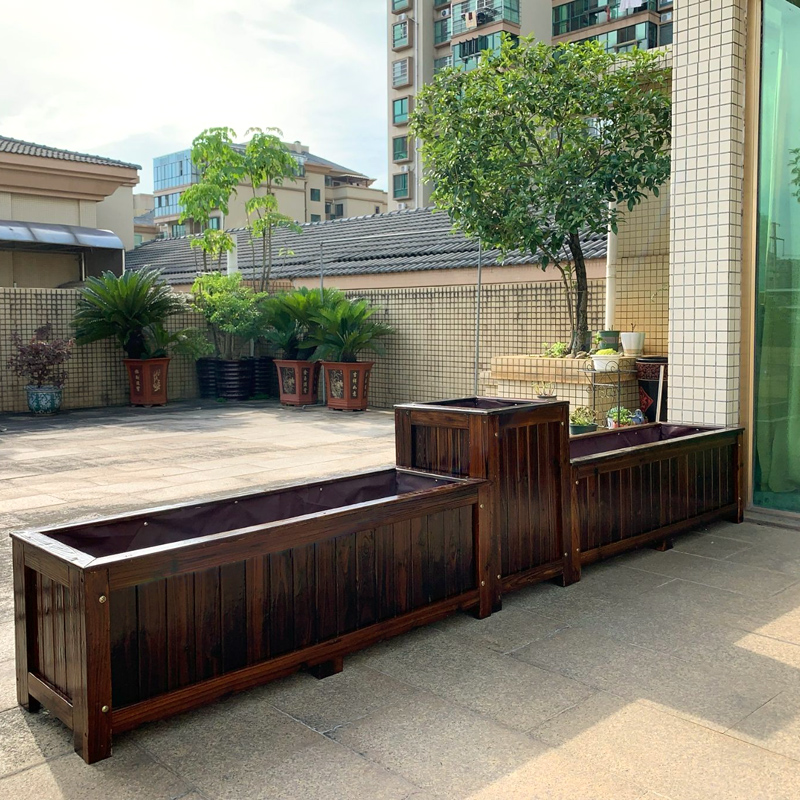 防腐木花箱户外庭院碳化木花盆长方形种植箱大号木花槽阳台种菜盆