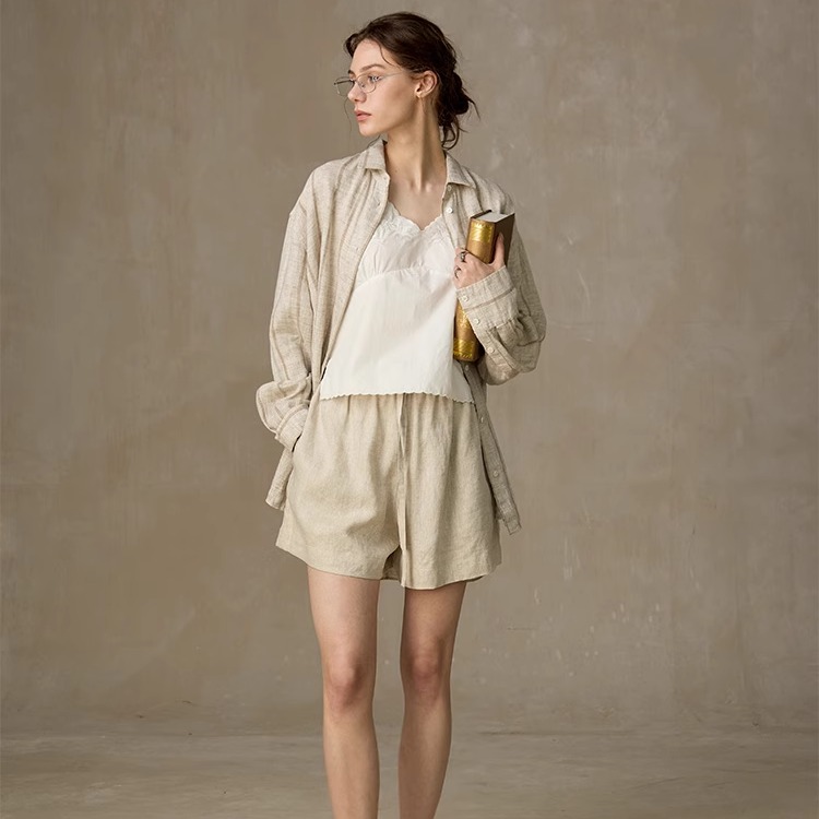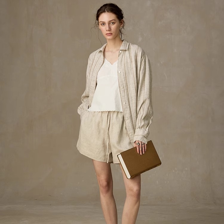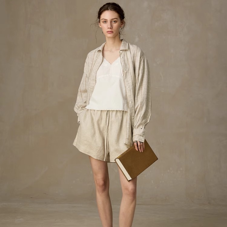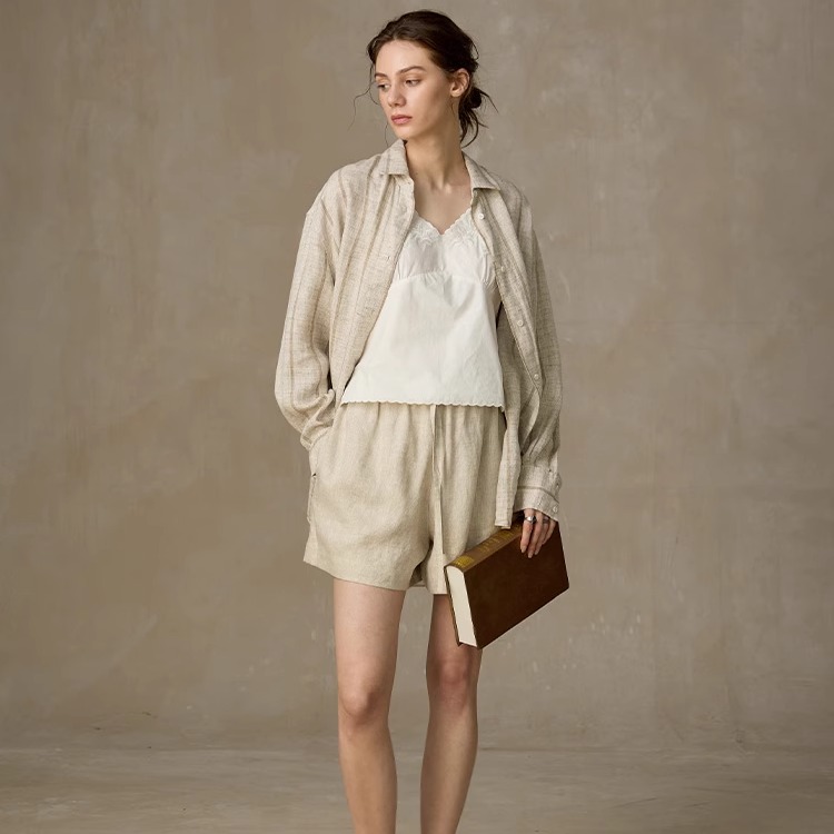 mesosph素麻挽风 100%亚麻A字休闲宽松短裤五分裤女2025新款夏
