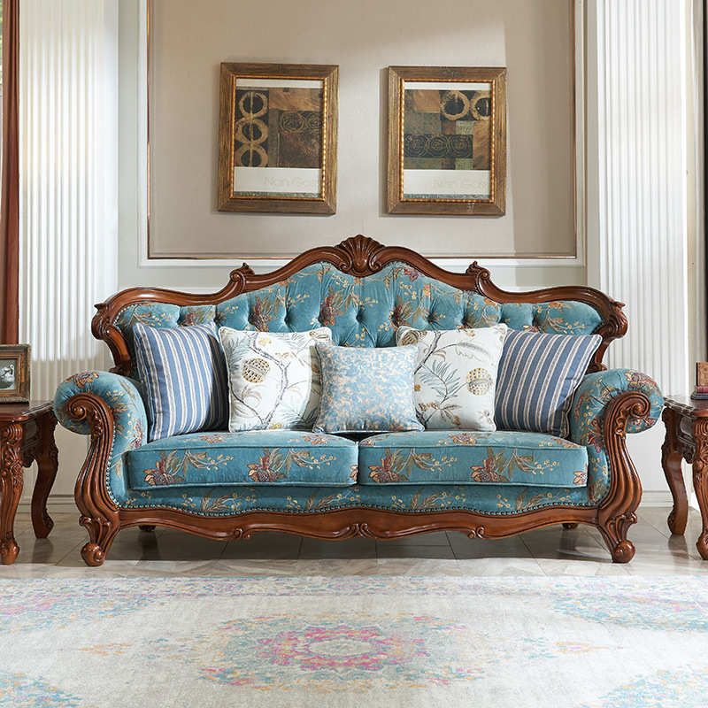 美式实木布艺沙发组合简约现代三人位欧式客厅高档田园复古小户型