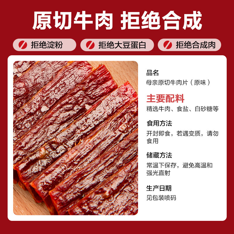 母亲原切牛肉片240g囤货装高蛋白代餐独立装办公室即食牛肉干零食