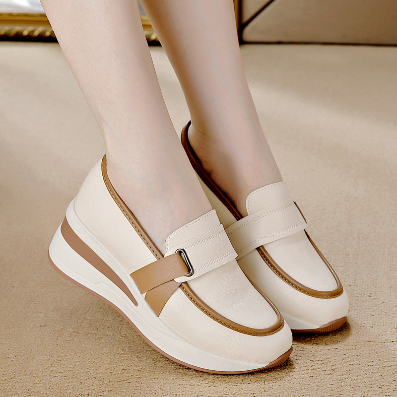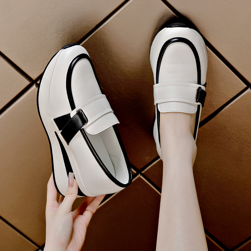 厚底坡跟单鞋女增高小皮鞋2025秋季新款百搭休闲鞋女软底真皮女鞋