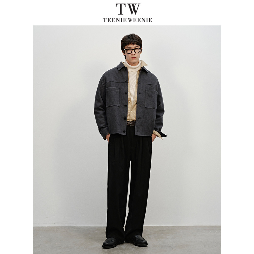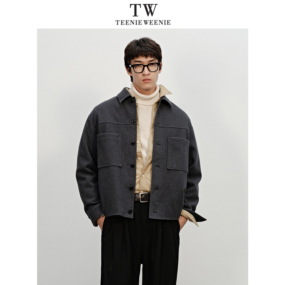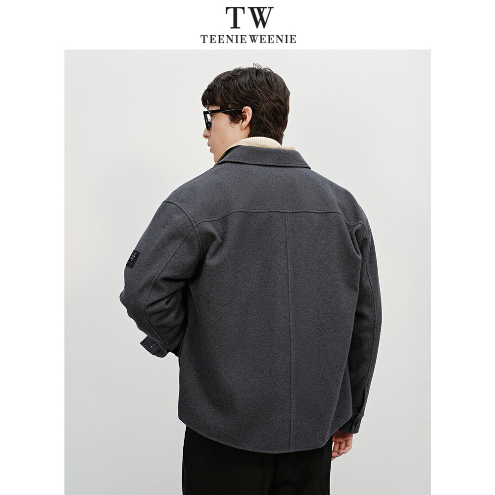 Teenie Weenie小熊男装羊毛混纺金属雨伞熊微阔简约休闲毛呢外套