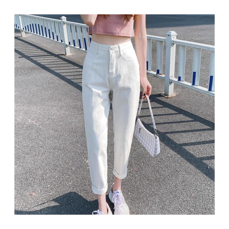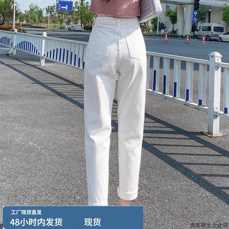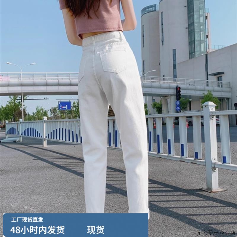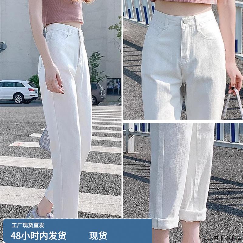 白色牛仔裤女宽松2025年春秋新款高腰弹力休闲哈伦裤九分萝卜裤子