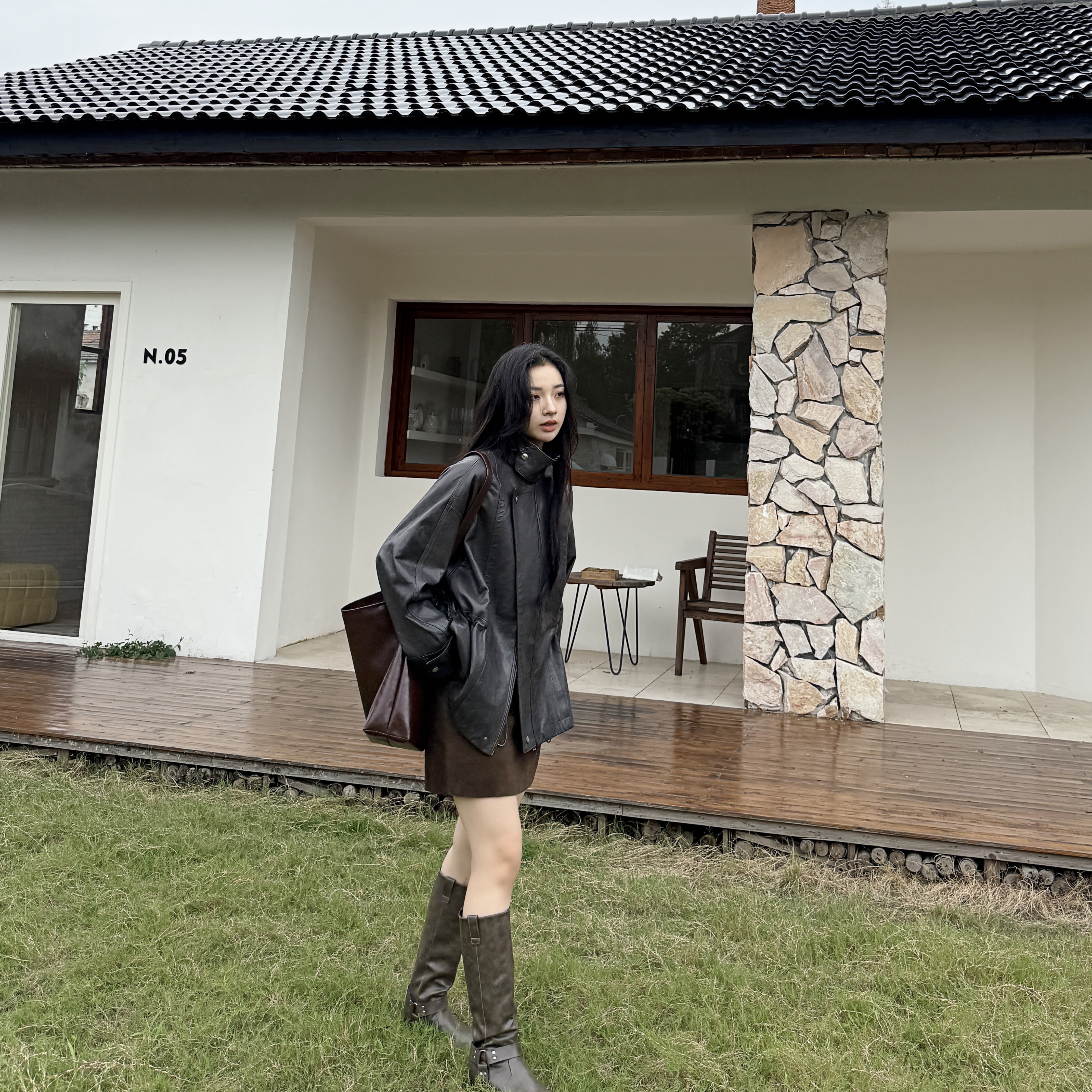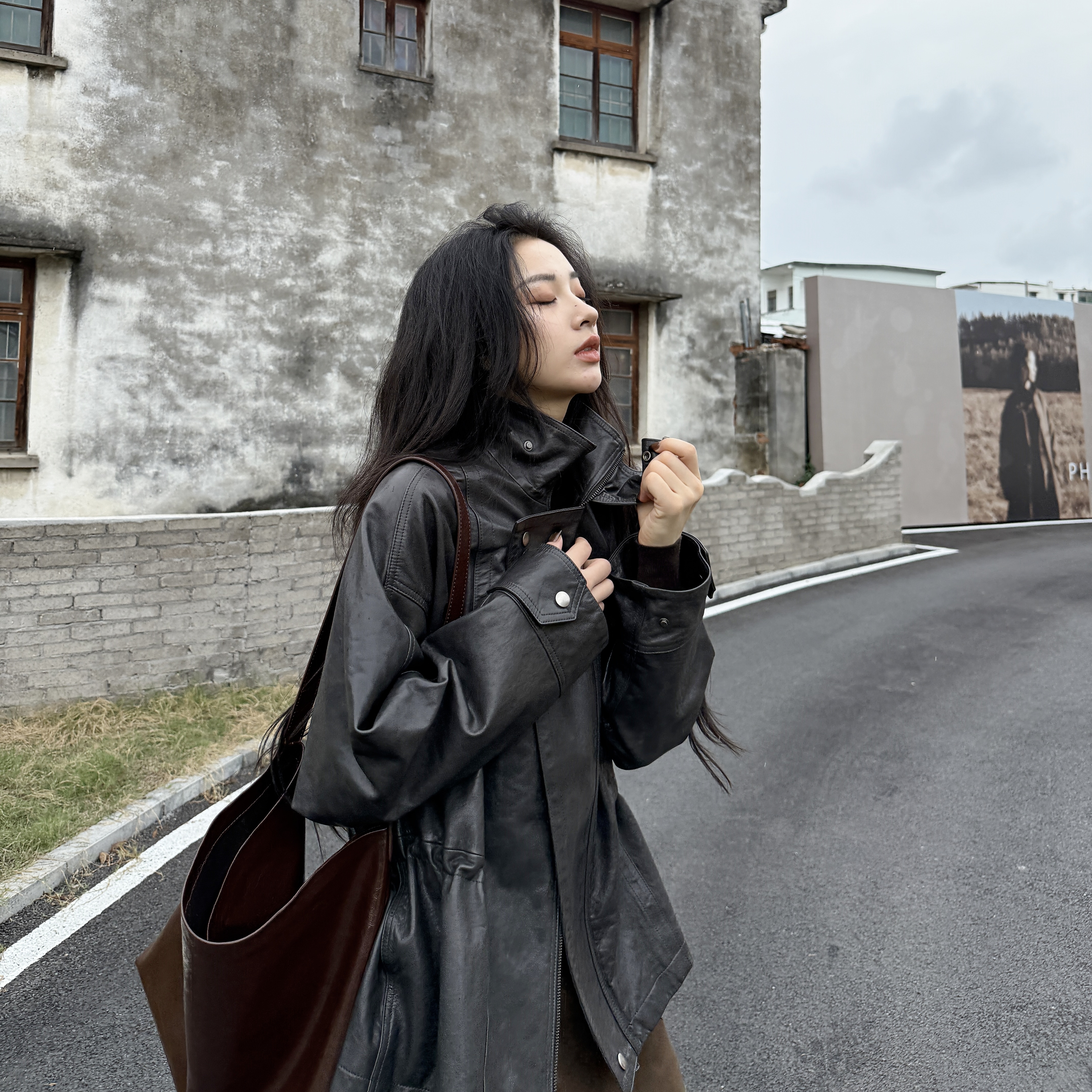 绵羊皮丨法国油蜡皮丨工装风宽松立领柔软皮衣帅气外套-MY6183