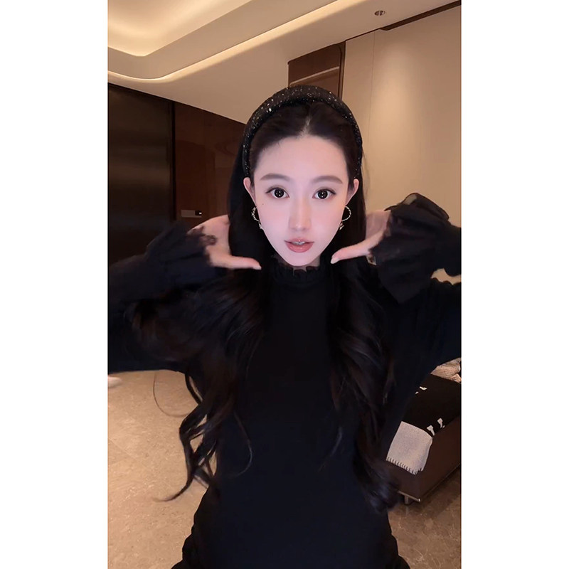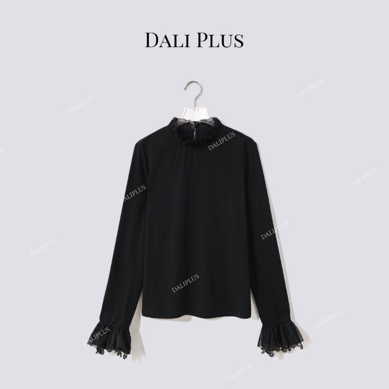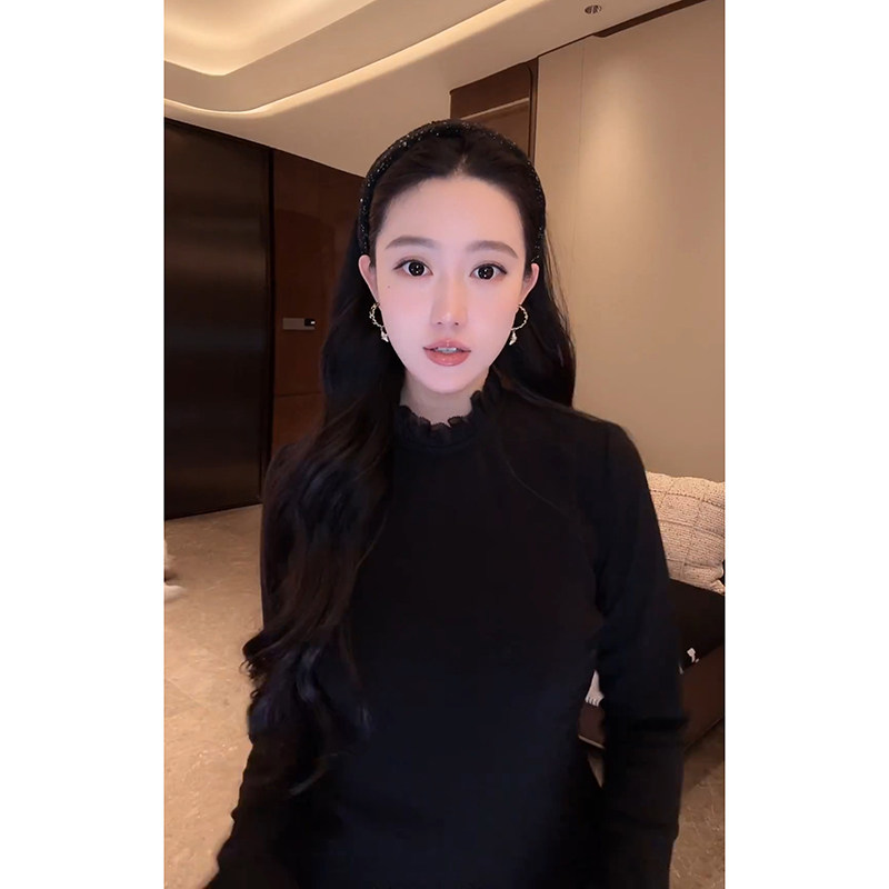 大李plus蕾丝绒木耳花边立领衬衫女冬季羊毛加厚内搭设计感打底衫