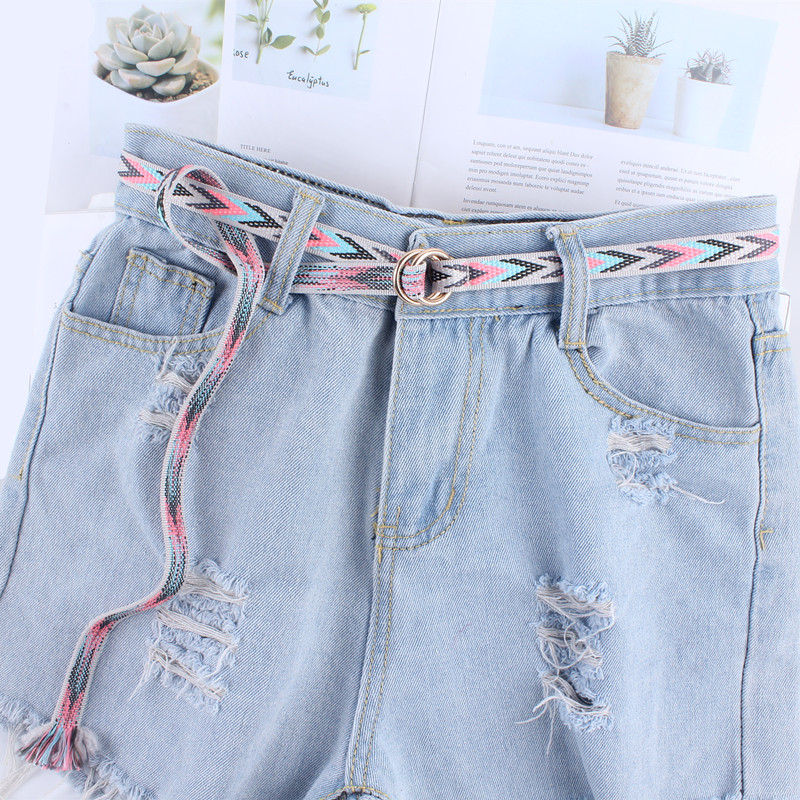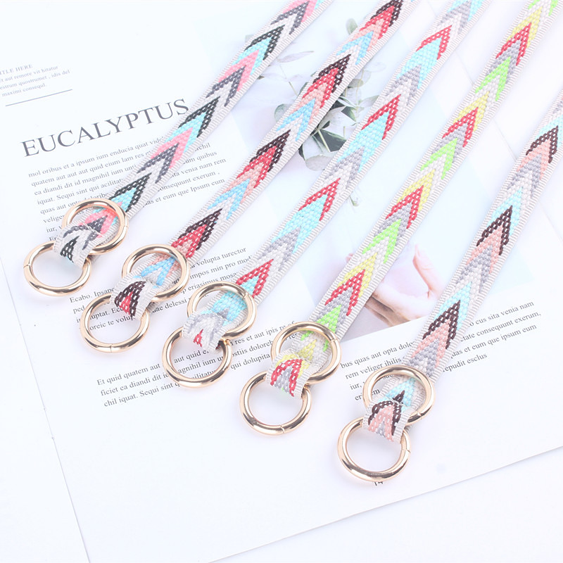 韩国细窄可调节ins圆扣帆布腰带