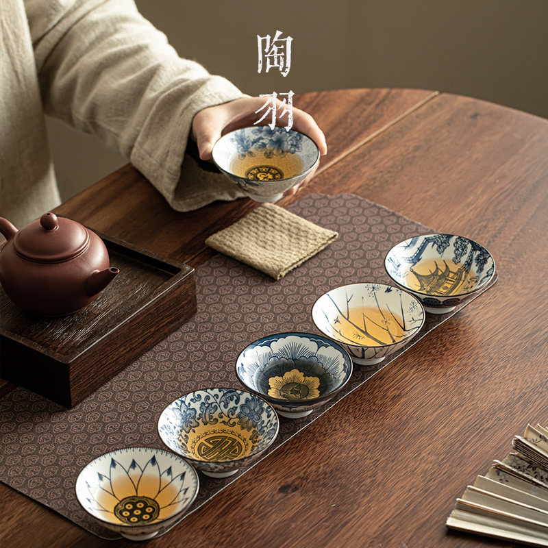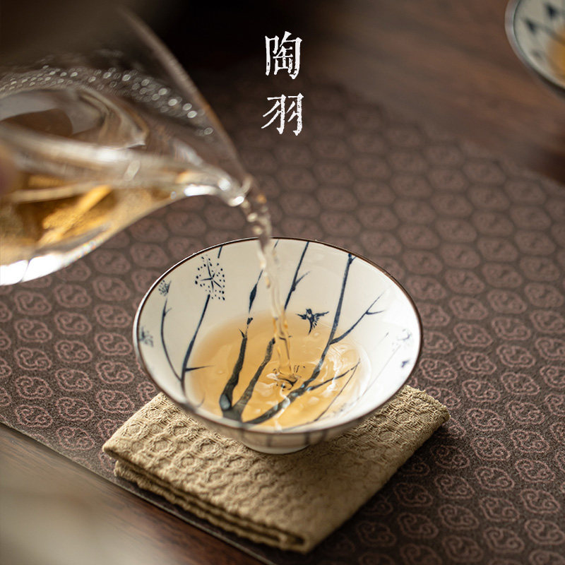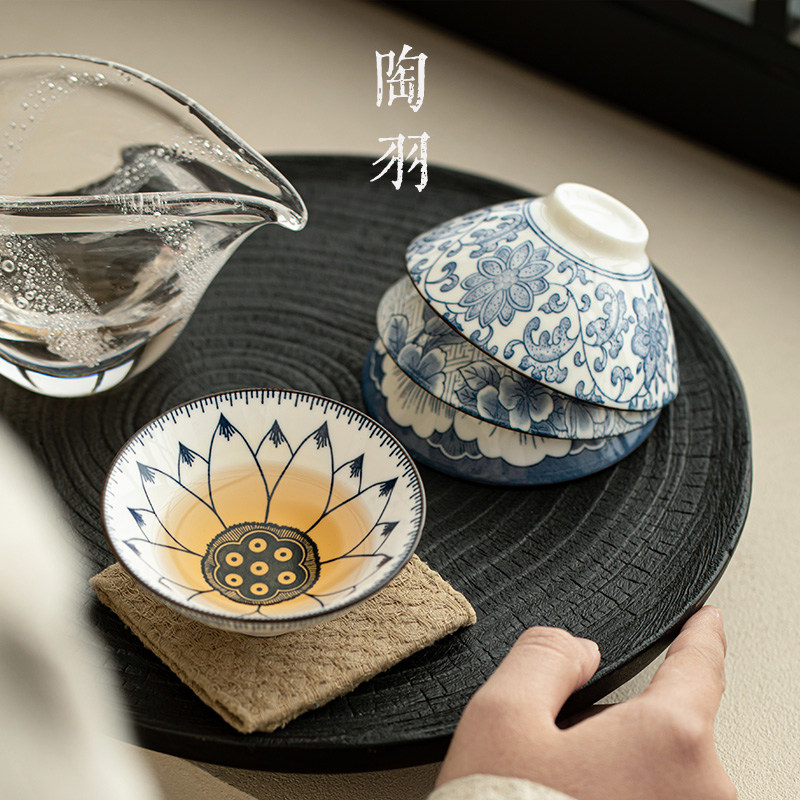 陶羽青花瓷功夫茶具茶杯主人杯