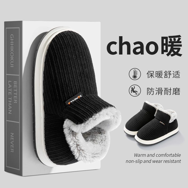 棉拖鞋男士冬季包跟厚底室内居家居加绒保暖防滑秋冬棉鞋男款外穿